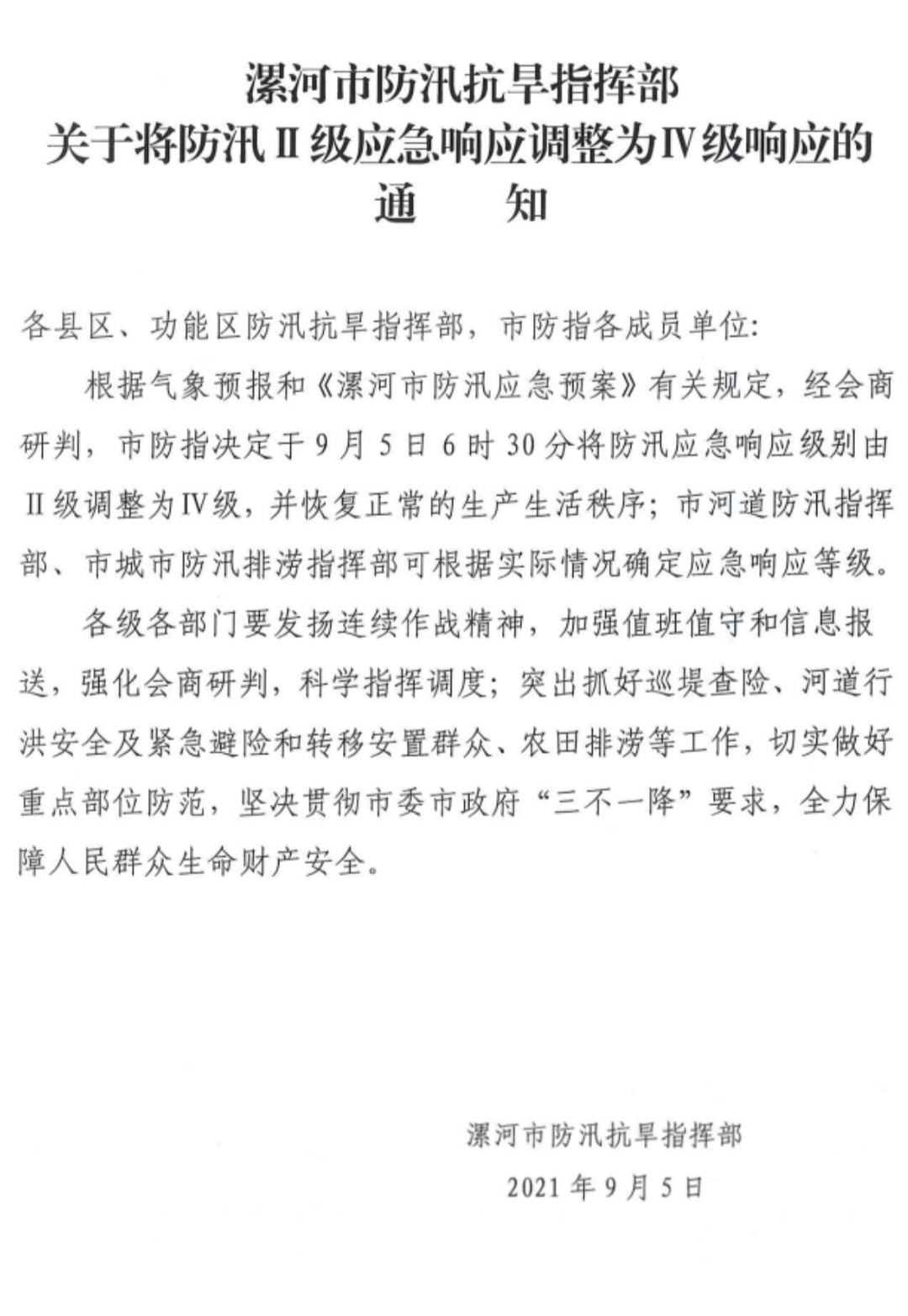 最新!漯河防汛應急響應等級調整!