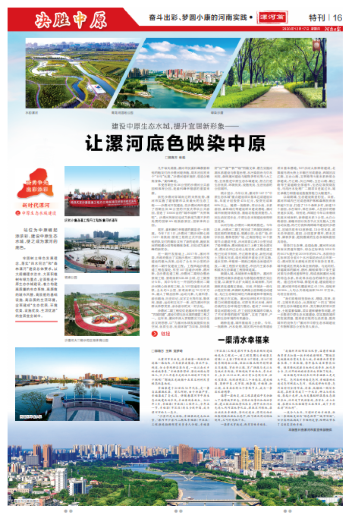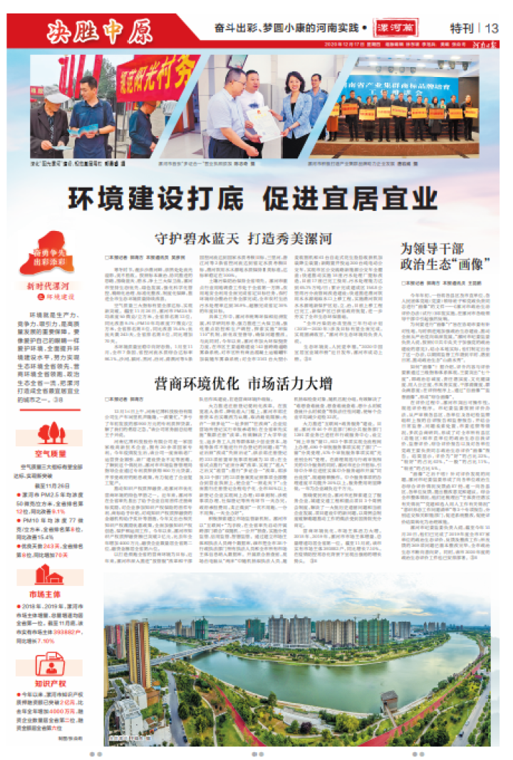 利民為本,群眾高品質生活的注腳越來越多。人民生活質量實現大提升,全市居民年人均可支配收入比2015年增長近40%,舞陽縣和所有貧困村全部達標退出。以醫療服務中心、職業教育中心、體育賽事中心等為支撐的豫中南地區性中心城市加快建設,惠民便民度不斷提升。職業教育、義務教育、普通高中教育名列全省前茅。公立醫院綜合改革走在全國前列,豫中南地區首例試管嬰兒在漯河誕生。沙澧河龍舟大賽、環沙澧河馬拉松等本土體育賽事影響力不斷擴大。生態環境實現較大改善,PM10、PM2.5、空氣優良天數保持“兩降一升”良好態勢,農機作業揚塵防控做法在全省推廣,水污染防治攻堅戰考核全省第一。城市綠化覆蓋率、綠地率、人均公園綠地面積均居全省前列。城鄉環境實現較大改觀,沙澧兩河四岸建成36公里開放式帶狀游園,新建總長33公里的沙澧河大二期正在加快推進,以水潤城的中原生態水城容顏初展。城鄉公交四通八達,農村水電路氣等基礎設施日益完善。人居環境和文明程度全面提升,農村人居環境建設連續多年居全省前列。