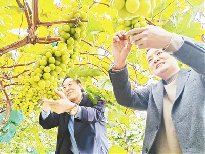 10月12日,保和鄉瑞興葡萄產業園,一串串果粒飽滿的陽光玫瑰煞是喜人。