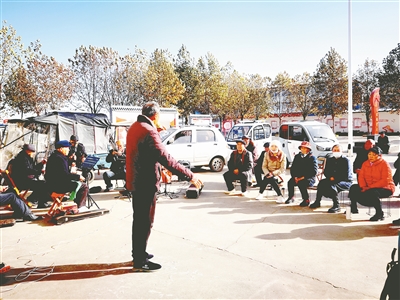 “今天風有些大,出來看戲的人少,平時有百十人哩!”郭陳村62歲的郭記才是戲曲演出活動發(fā)起人之一。他說:“來這里唱戲的都是‘常客’。大家除了自娛自樂,還相互學習切磋。每周四下午2點,只要天氣條件允許,村民們在這個文化廣場準時開唱。”