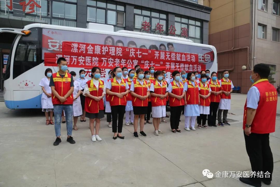我為七一獻熱血,滴滴鮮血汩汩流,“七一”建黨節這天,金康萬安員工以自己的實際行動,樹立了新時期醫護人員的良好風貌,詮釋了金康萬安“孝慈仁善”的企業文化,更彰顯了金康萬安人熱心公益和醫者仁心的高尚情懷。