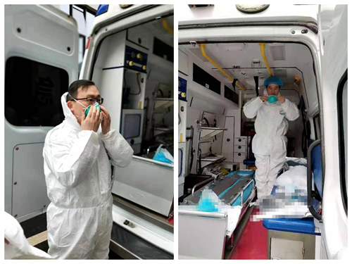 市二院醫(yī)療急救運(yùn)轉(zhuǎn)隊(duì)是2月5號(hào)到達(dá)武漢,經(jīng)過兩天的緊張集訓(xùn),今天他們就要開始接到首次急救運(yùn)轉(zhuǎn)任務(wù)。“第一次經(jīng)歷如此重大的戰(zhàn)斗,會(huì)緊張、有壓力。”市二院轉(zhuǎn)運(yùn)醫(yī)療隊(duì)的隊(duì)員們深知,每一次轉(zhuǎn)送任務(wù)就是離危險(xiǎn)更近一步,但沒有一個(gè)人打退堂鼓,大家相互鼓勵(lì)打氣,克服了許多難以想像的困難。執(zhí)行任務(wù),穿上密不透氣的防護(hù)服,一穿就是幾個(gè)小時(shí),衣服濕了又干干了又濕。因?yàn)榕律蠋桓液人貋砗笠?jīng)過嚴(yán)格的車輛和個(gè)人消毒處理,忙活完,大家累得都吃不下飯。