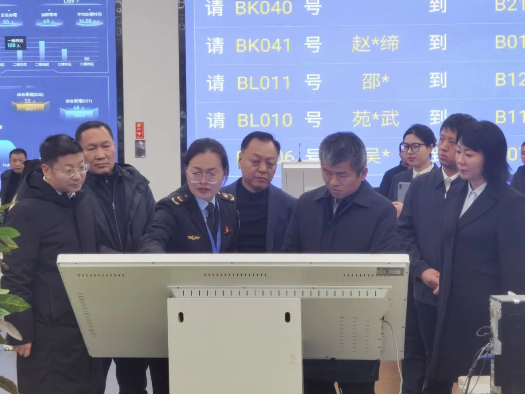 李明東一行先后來到政務(wù)服務(wù)大廳各功能分區(qū),詳細了解無差別綜合受理、系統(tǒng)聯(lián)通、信息共享、流程優(yōu)化、材料減免等情況,重點了解了“一把手走流程”“一件事一次辦”“好差評”“有訴即辦”、智能化自助設(shè)備應(yīng)用等工作開展情況。