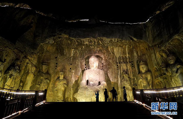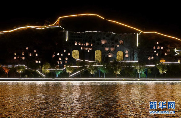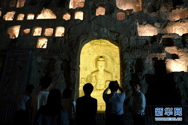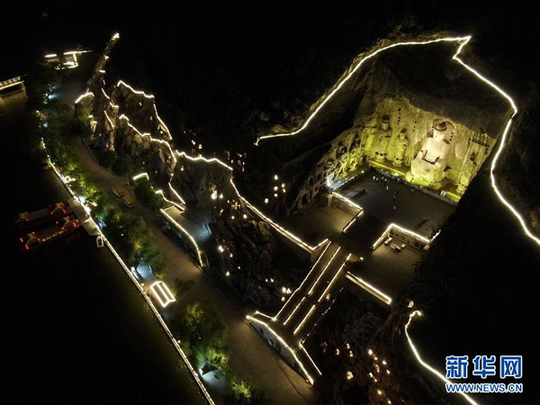 2020年4月起,河南省洛陽市龍門石窟景區(qū)推出“夜游龍門”活動,讓游客在晚間領(lǐng)略石窟造像的別樣風(fēng)采。 新華社記者 李安 攝