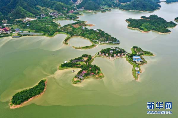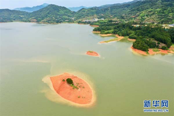 這是7月2日拍攝的福建省古田縣翠屏湖(無人機照片)。 位于福建省古田縣境內(nèi)的翠屏湖是福建省最大的人工湖,水域面積達(dá)37.1平方公里,湖中分布著眾多島嶼,素有“福建千島湖”之美譽。陣雨過后,翠屏湖煙波浩渺,美不勝收。 新華社記者 姜克紅 攝