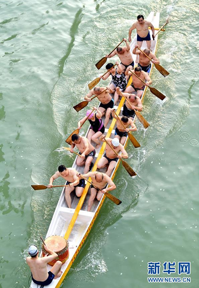 8月6日,人們?cè)诤笔⌒骺h城貢水河上用劃龍舟的方式進(jìn)行晨練。 湖北省恩施土家族苗族自治州宣恩縣在穿城而過(guò)的貢水河兩岸設(shè)立了親水步道、游泳戲水、劃船健身、休閑納涼等區(qū)域,并建設(shè)更衣室、休閑座椅、公共直飲水等基礎(chǔ)設(shè)施,方便人們共享貢水河帶來(lái)的夏日清涼。 新華社發(fā)(宋文 攝)