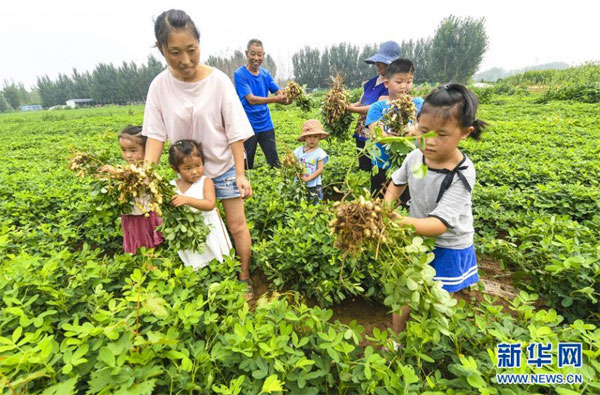 8月6日,小朋友在河北省永清縣后奕鎮一處休閑樂園里采摘花生。 近年來,河北省永清縣采取“農業+文化+旅游”方式,整合農業、人文、生態等資源優勢,通過召開旅發大會等形式,打造休閑游、采摘游、親子游等特色旅游活動,積極推動鄉村旅游發展,促進當地群眾就業增收,助力鄉村振興。 新華社記者 李曉果 攝