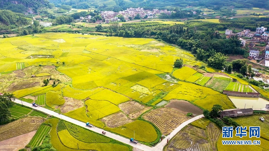 近日,在廣西柳州市魚峰區里雍鎮龍江村,各種農用機械開進場,拉開了早稻收割的序幕。一眼望去,成片的早稻在陽光下金燦燦一片,當地農民抓緊晴好天氣收獲歸倉。