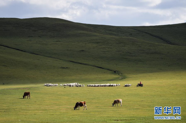 牧民在克什克騰旗貢格爾草原放牧(8月11日攝)。 克什克騰旗位于內蒙古自治區赤峰市西北部,境內的湖泊、河流、草原、森林等自然景觀,讓人們流連忘返。 新華社記者 劉磊 攝