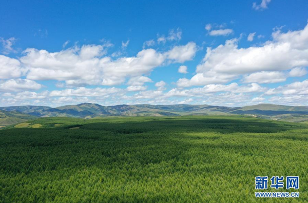這是8月13日拍攝的位于克什克騰旗的樺木溝國家森林公園風景(無人機照片)。 克什克騰旗位于內蒙古自治區赤峰市西北部,境內的湖泊、河流、草原、森林等自然景觀,讓人們流連忘返。 新華社記者 徐欽 攝