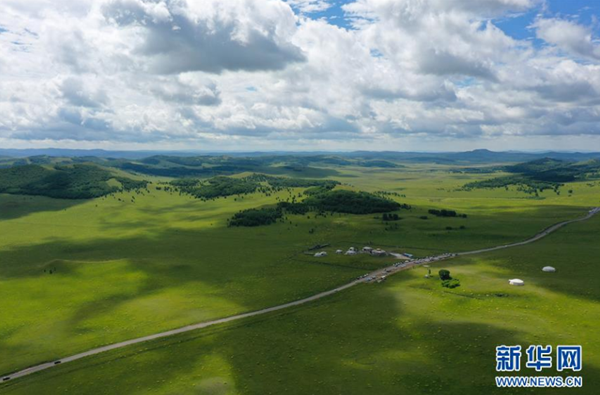 這是8月13日拍攝的克什克騰旗烏蘭布統景區風景(無人機照片)。 克什克騰旗位于內蒙古自治區赤峰市西北部,境內的湖泊、河流、草原、森林等自然景觀,讓人們流連忘返。 新華社記者 徐欽 攝