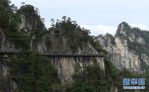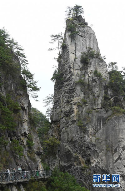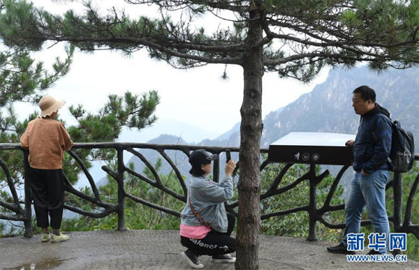 10月6日,游客在臨安區清涼峰游玩。 中秋和國慶假期,不少游客來到浙江杭州臨安區的山間游玩,和大自然親密接觸。 新華社記者 翁忻旸 攝