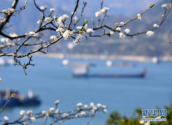 隨著氣溫回升,三峽庫區湖北省秭歸縣沿江兩岸春花爛漫,景色如畫。