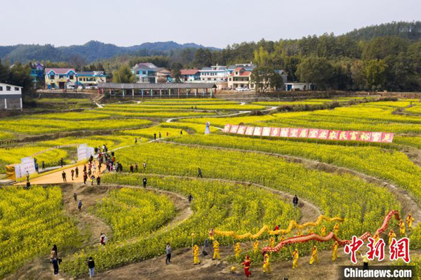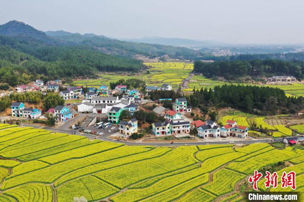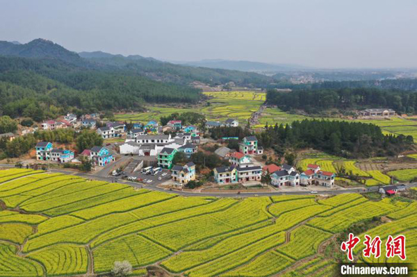 2月21日,空中俯瞰江西省萬安縣田北農民畫村景區美景。春日時節,萬安縣各地的油菜花盛開,與美麗鄉村共同勾勒出一幅春日田園畫卷,美不勝收。當地以美麗鄉村建設為契機,大力發展鄉村旅游,促進鄉村振興。