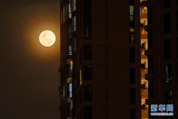新加坡:“超級月亮”現(xiàn)身夜空