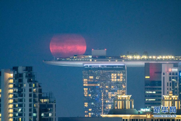 4月27日,“超級月亮”出現(xiàn)在新加坡城市的天空。