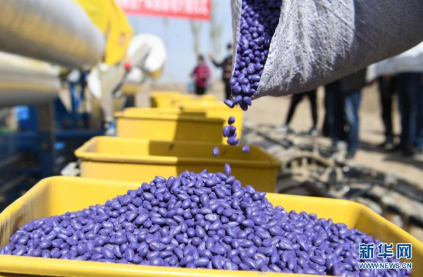 中國農業科學院棉花研究所生物技術研究室主任袁有祿(左)、國家棉花產業聯盟副理事長王進華在喀什地區莎車縣指導播種(4月11日攝)。