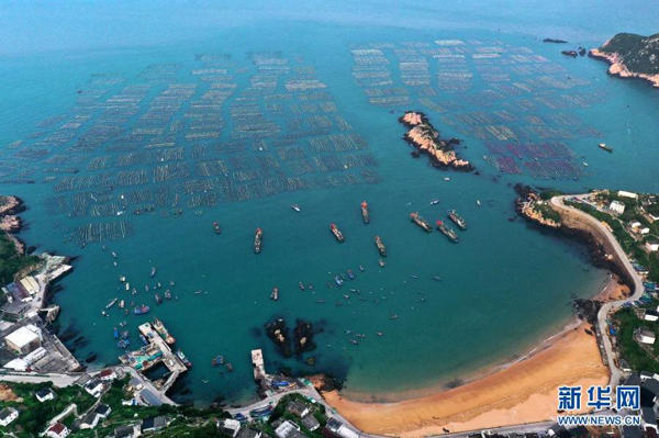 這是5月30日在浙江省舟山市嵊泗縣枸杞島拍攝的貽貝養殖基地(無人機照片)。