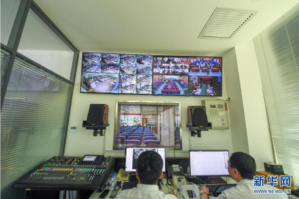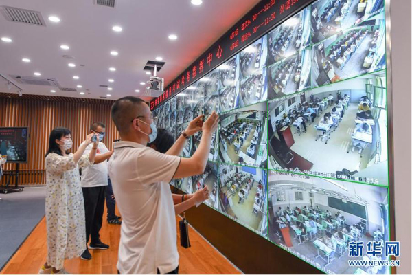6月7日,在吉林省國(guó)家教育考試考務(wù)指揮中心,工作人員查看監(jiān)控畫面。