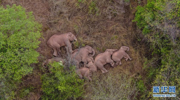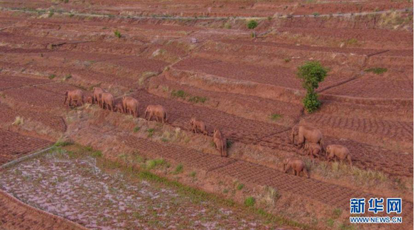 6月6日在昆明市晉寧區夕陽彝族鄉拍攝的野象(無人機照片)。