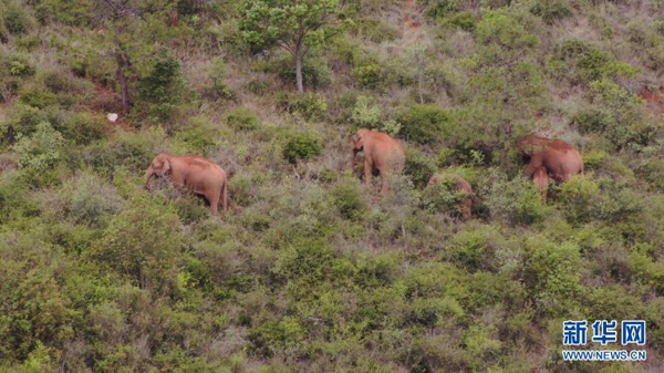 6月22日在云南省玉溪市峨山縣大龍潭鄉附近拍攝的象群(無人機視頻截圖)。