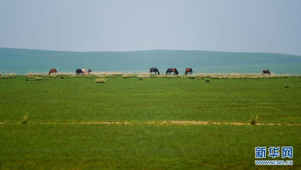 夏日,內蒙古錫林郭勒草原綠草如茵,風光旖旎。新華社記者 連振 攝