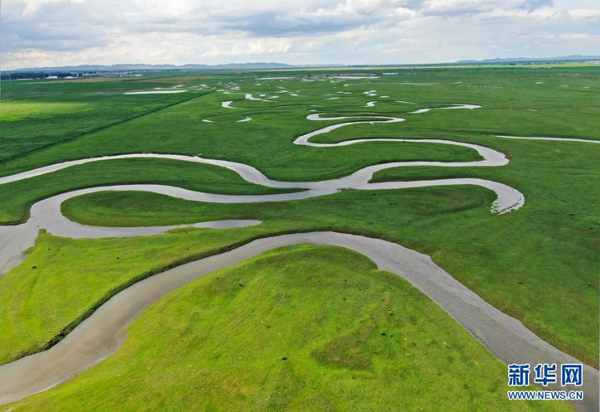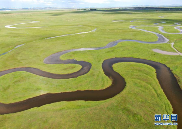 今夏雨水豐沛,在河北省張家口市塞北管理區(qū),曲折蜿蜒的灤河水猶如絲帶盤繞在綠色的草原上,美若畫卷。