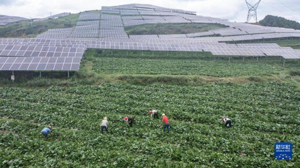 在貴州省畢節(jié)市威寧彝族回族苗族自治縣,光伏板下5000多畝土地種植的農(nóng)產(chǎn)品進(jìn)入豐收季,食用菌、紅菜苔、白蘿卜……一片片光伏板下生機(jī)盎然。