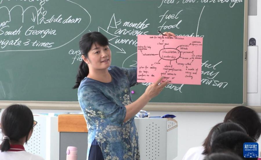 北京市匯文中學教育集團英語教師羅錦虹在給學生上課(資料照片)。新華社發