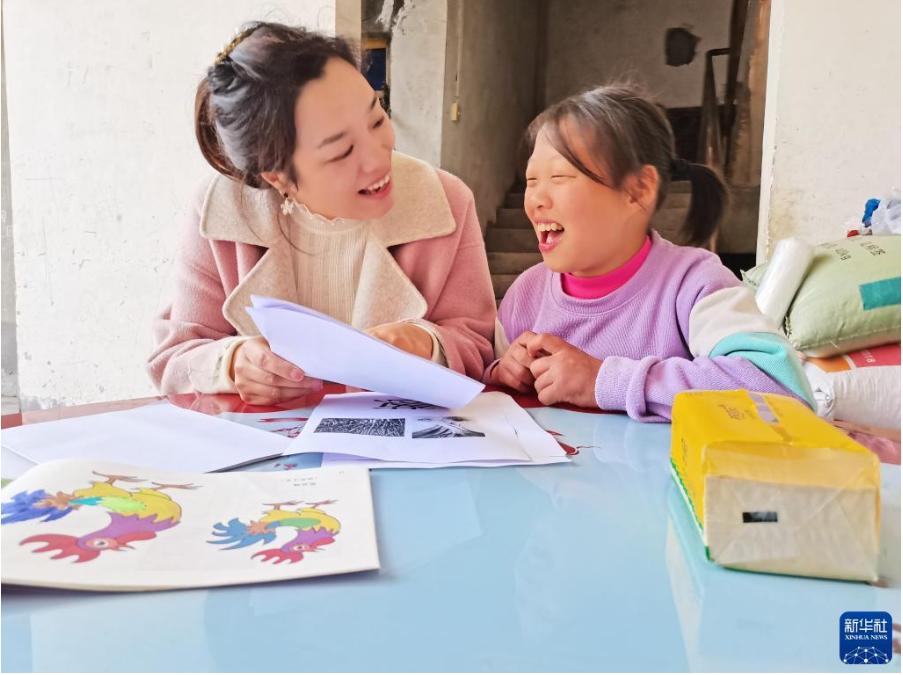 3月23日,四川省眉山市仁壽縣特殊教育學校教師顏志霞為學生提供“送教上門”服務。新華社發