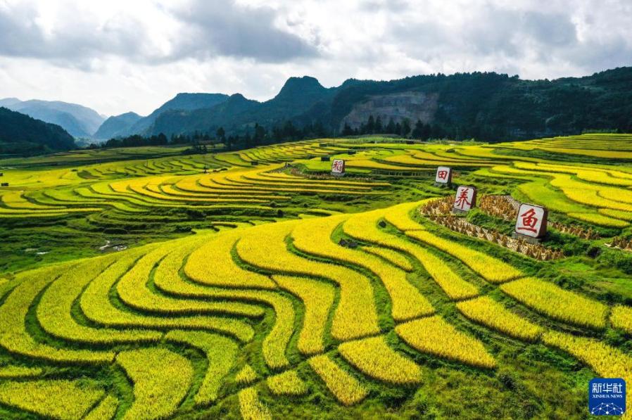 貴州省龍里縣灣灘河鎮石頭村的稻田(9月15日攝,無人機照片)。