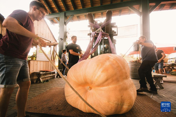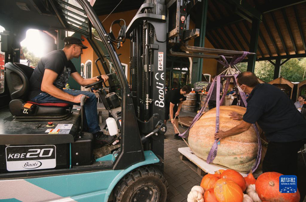 近日,為慶祝南瓜豐收,位于德國科隆市附近的洛馬爾鎮舉辦傳統南瓜節。趣味南瓜稱重比賽成為節日期間的重頭戲。據德國當地媒體報道,來自德國、比利時等地的南瓜種植戶帶著各自培育而成的優質南瓜前來參賽,獲勝者可獲得豐厚獎金。新華社發(唐穎 攝)