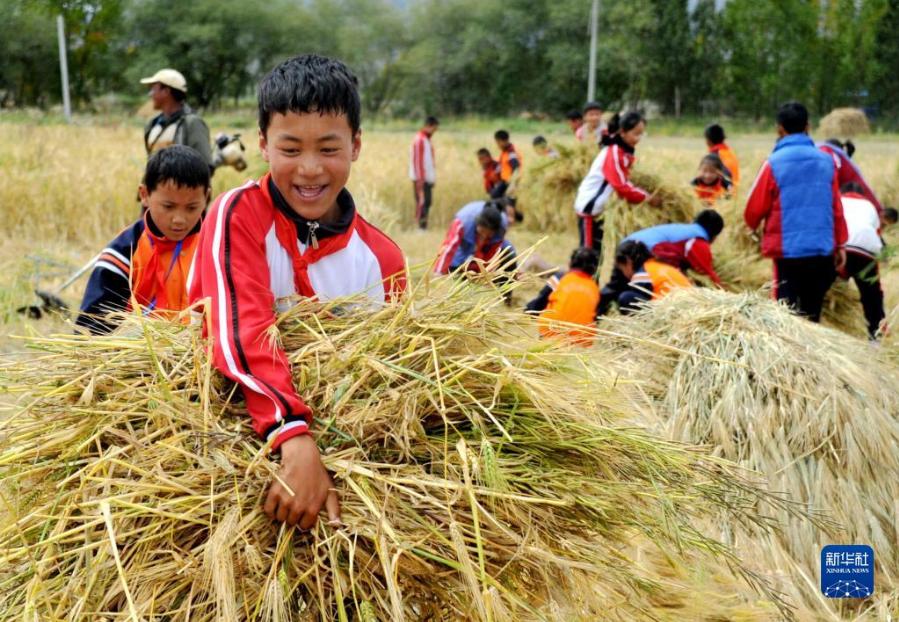 時下正值青稞成熟的季節,西藏日喀則市上海實驗學校40余名師生來到日喀則市甲措雄鄉,參與當地的青稞收割,把“思政課”上在青稞地里。學生們在實踐中體會勞動的艱辛,在收獲中感受勞動的快樂。