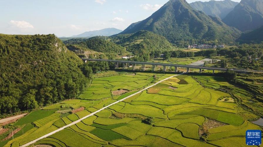 這是湖南省永州市壽雁鎮深田村的稻田(8月30日攝,無人機照片)。