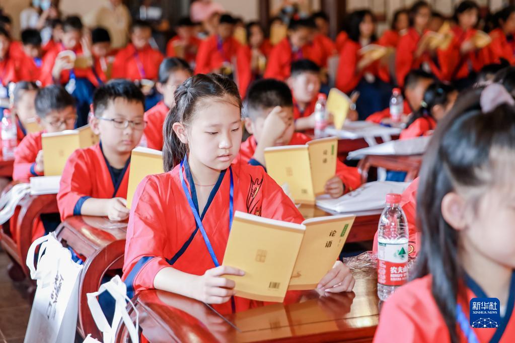 9月25日,滬臺學子共同朗誦《論語》。新華社發