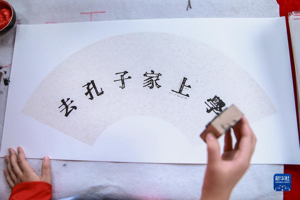 9月25日,滬臺學子在活動上體驗拓印。新華社發