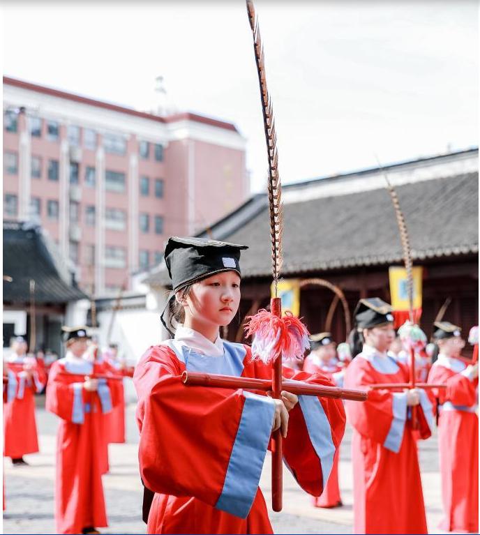 9月25日,上海學子以祭孔佾舞為活動開啟序幕。新華社發