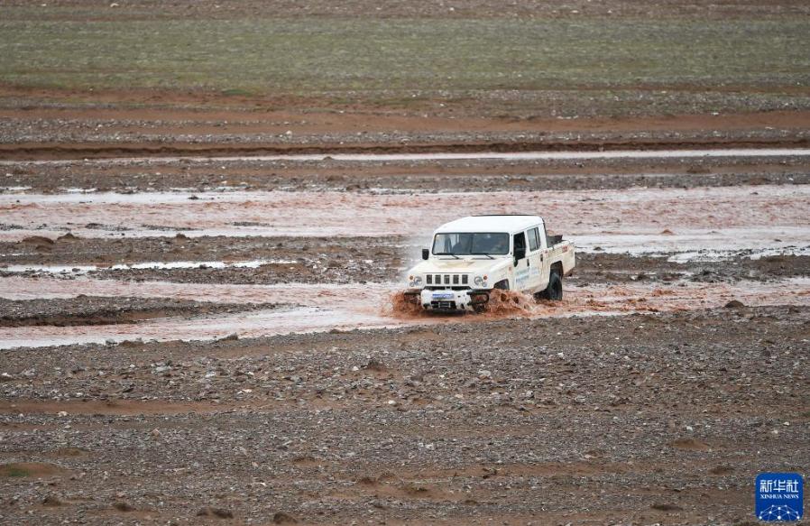 巡山隊員在可可西里地區駕車巡山(2020年7月8日攝)。