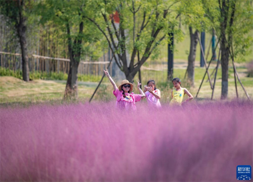 10月2日,人們在重慶市兩江新區粉黛山公園游玩。