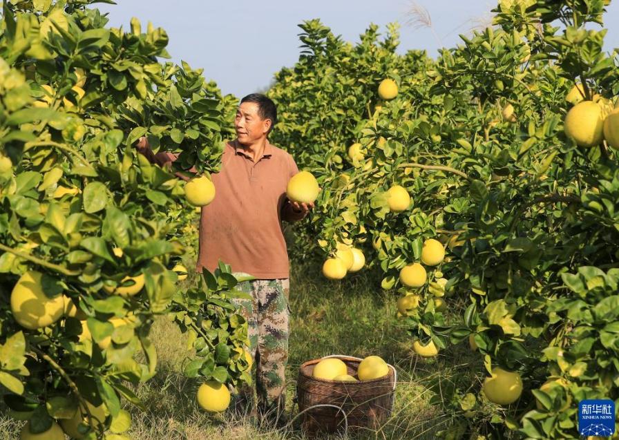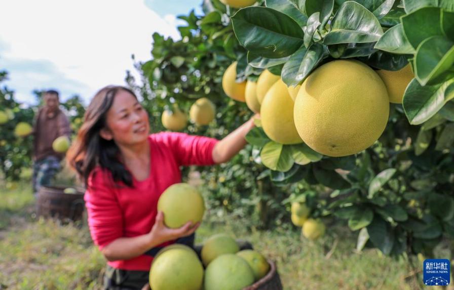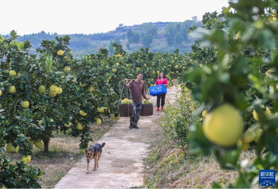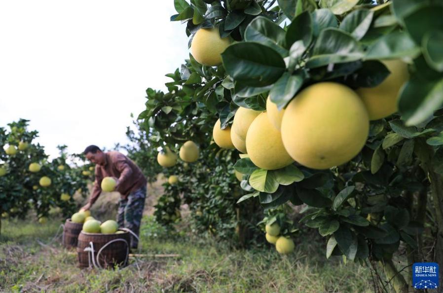 金秋時節,貴州省銅仁市玉屏侗族自治縣種植的柚子迎來豐收,當地村民抓緊采摘、分揀、挑運柚子,供應市場。近年來,玉屏侗族自治縣依托當地生態資源優勢,采取“公司+合作社+農戶”模式,引導農民種植柚子,帶動農民增收。
