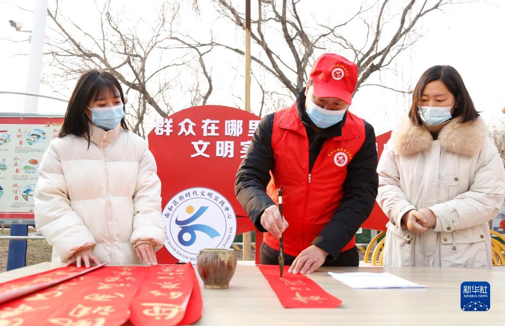 新春臨近,人們開始寫春聯、送福字,在祝福聲中迎接農歷新年。