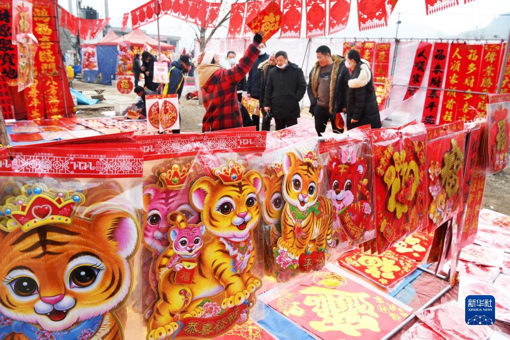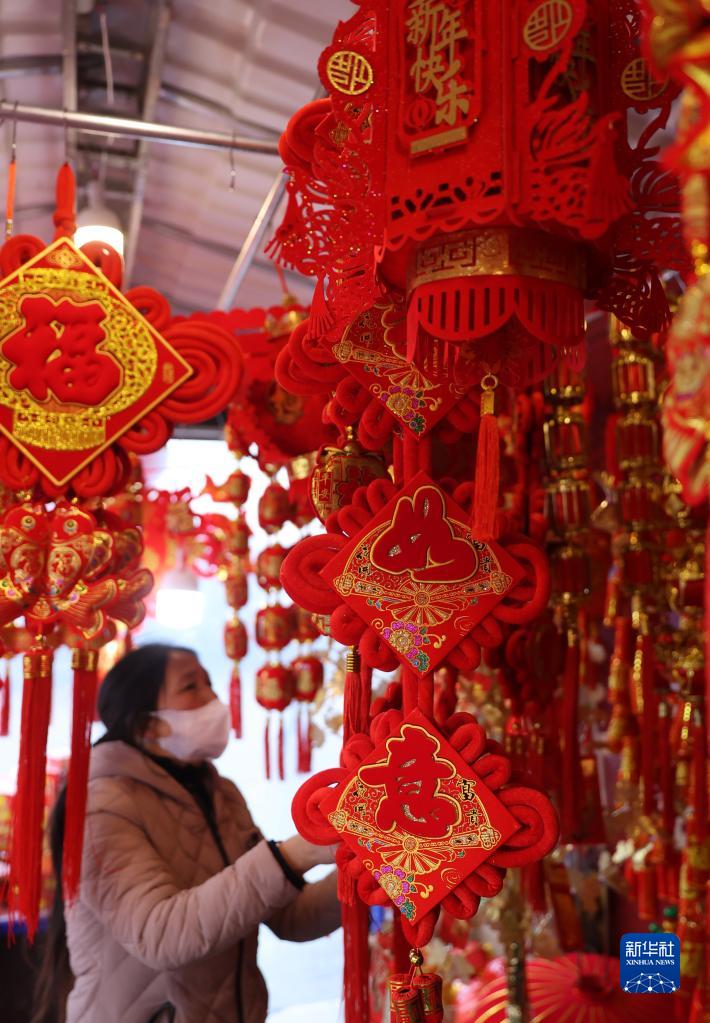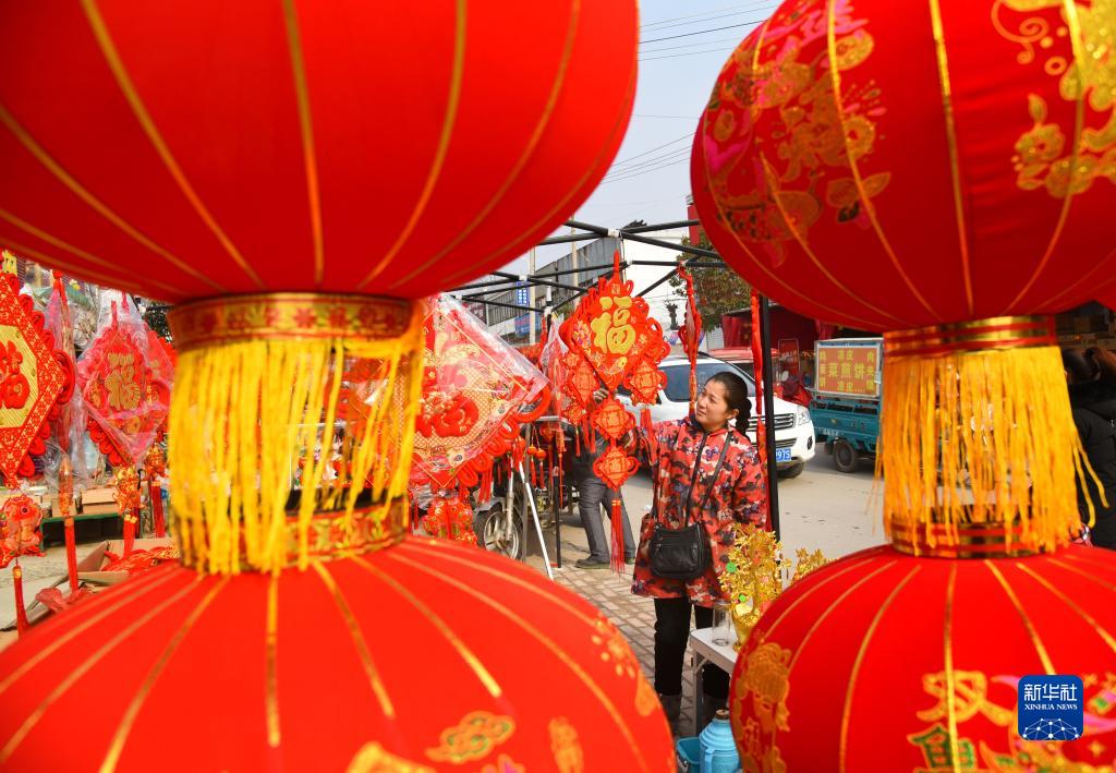 1月25日,在河南省平頂山市寶豐縣張八橋鎮,村民選購年節飾品。