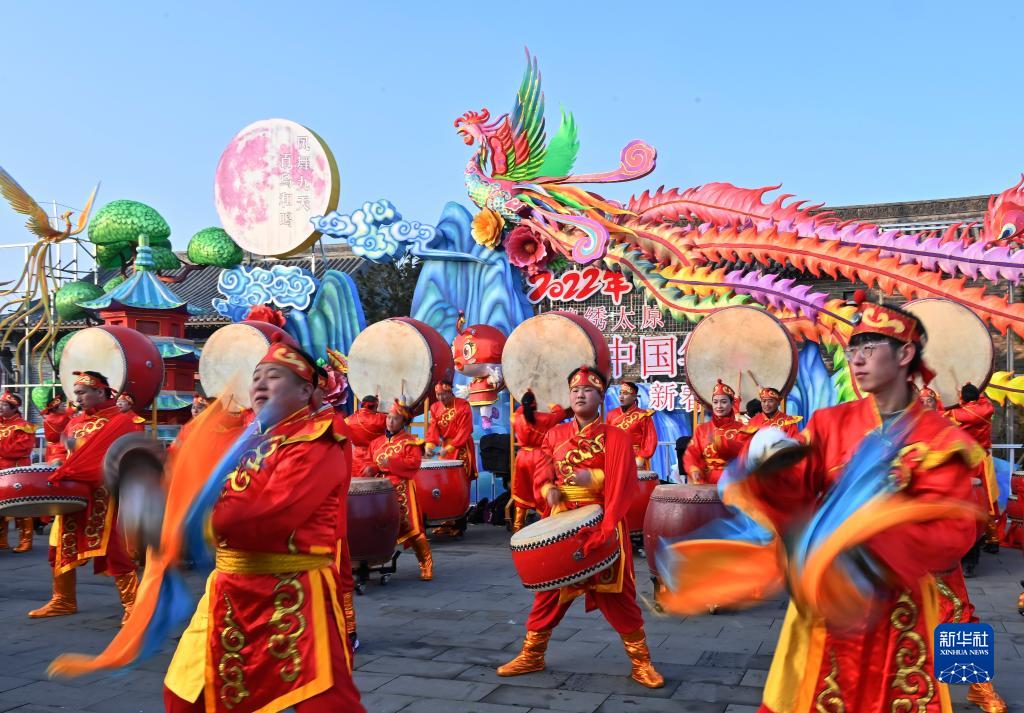 1月25日,2022錦繡太原中國年·鳳舞龍城花燈會在太原古縣城開幕。這是演員在進行民俗表演。