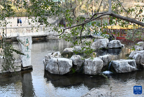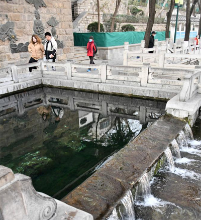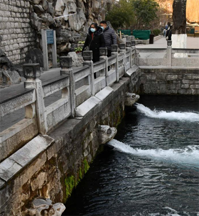 1月2日,游客在觀賞濟(jì)南市區(qū)的琵琶泉。