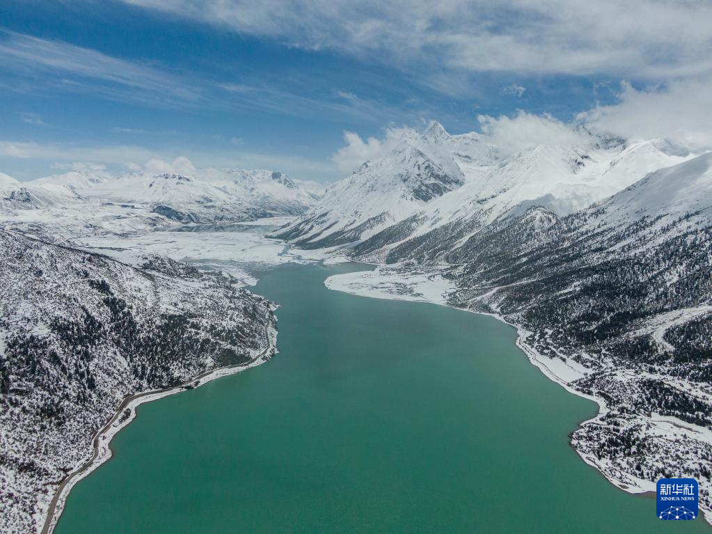 這是無人機拍攝的然烏湖(4月24日攝)。