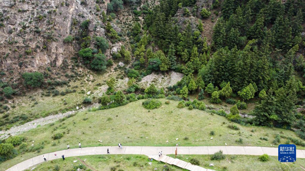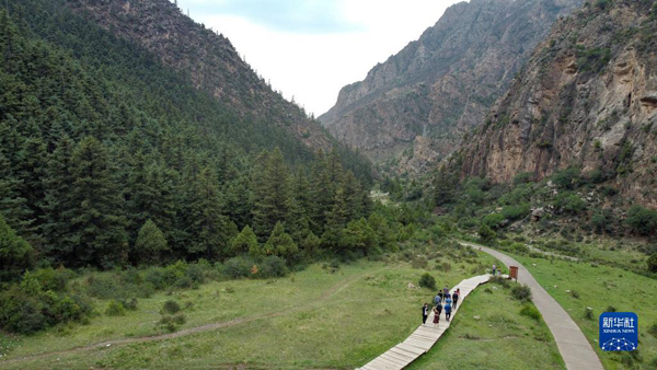 7月11日,游客在內蒙古賀蘭山國家級自然保護區內游覽(無人機照片)。