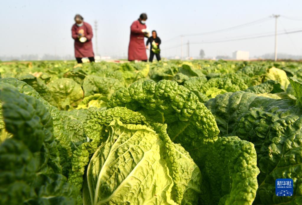 11月7日,河北省石家莊市欒城區(qū)西營鄉(xiāng)吳郭村,菜農(nóng)在田里收獲白菜。