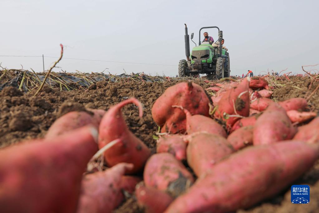 11月7日,河南省平頂山市寶豐縣周莊鎮(zhèn)西黃村農(nóng)民在收獲紅薯。
