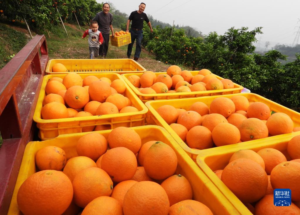 11月7日,四川省達州市高新區(qū)金埡鎮(zhèn)金山村,果農(nóng)在搬運剛采摘的有機臍橙。