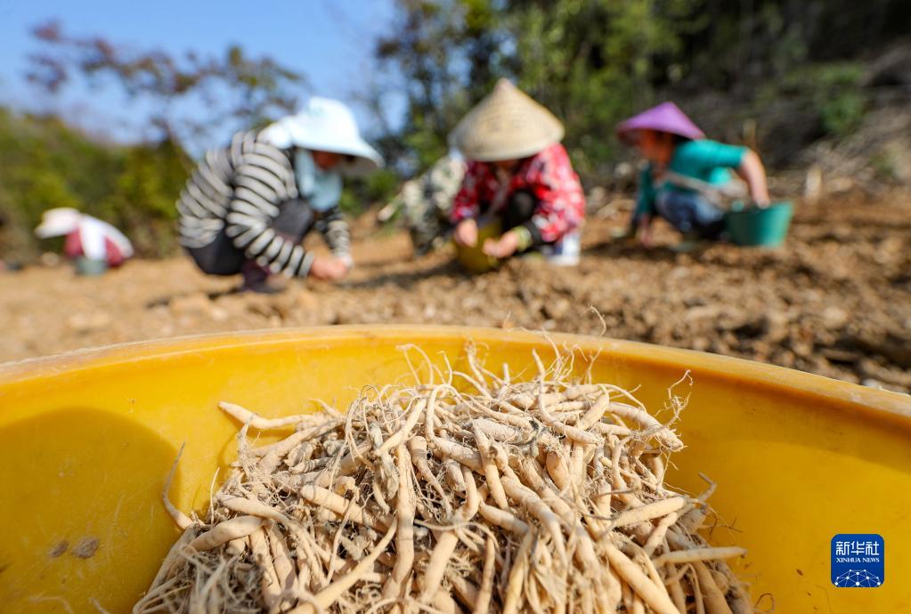 11月7日,貴州省黔東南苗族侗族自治州岑鞏縣天馬鎮(zhèn)天馬村,村民在種植太子參。